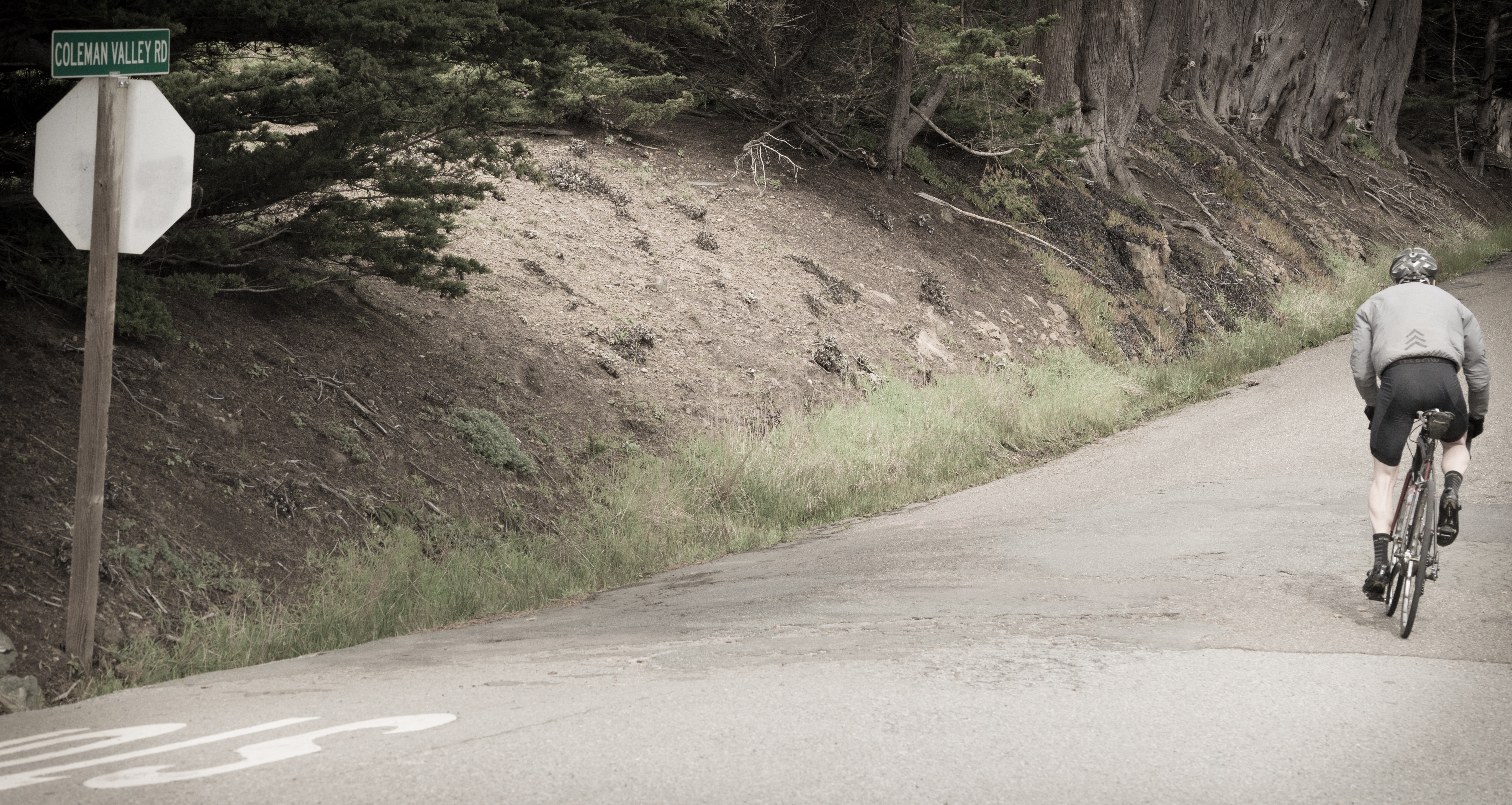 Second, I’m nostalgic for the first Hopper ever in 1998. I’ll never forget climbing the back side of Sweetwater with Rick Hunter who had a portable radio in his jersey pocket so we could listen to the SuperBowl. The first edition was Sweetwater, River Rd to Hwy 1, Willow Creek. Hadn’t yet thrown in Old Caz…not to mention Fort Ross. The first time I did this loop was on a birthday ride. Most likely with Dan Boyle, Kevin Garrison, Don Winkle, Roger Bartels and other friends who just “had to” go along on the birthday ride mission. They thought I was crazy, even 20+ years ago. It’s really a ride to make to you say “uncle”. I kinda like that.